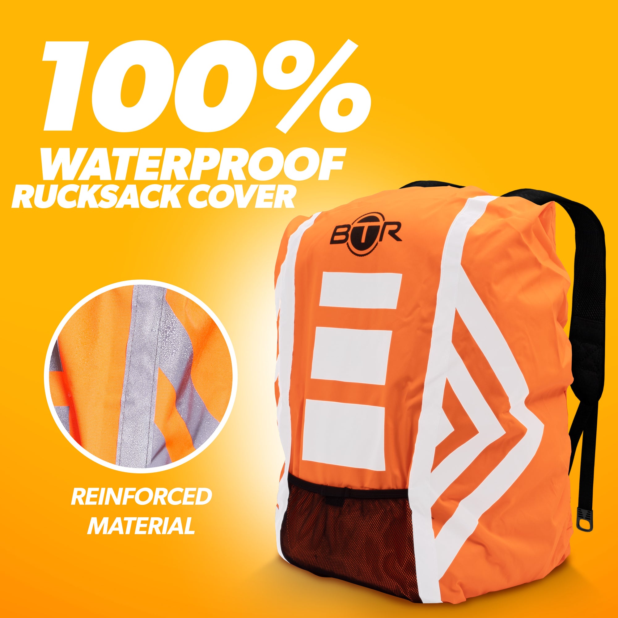 This waterproof backpack cover slips over your rucksack in seconds and keeps everything inside completely dry, even in heavy rain. The hi-vis fabric with reflective strips makes you far more visible to drivers in low light, and because the cover is see-through at the back, it doesn't obscure any hi-vis clothing you're already wearing underneath.
