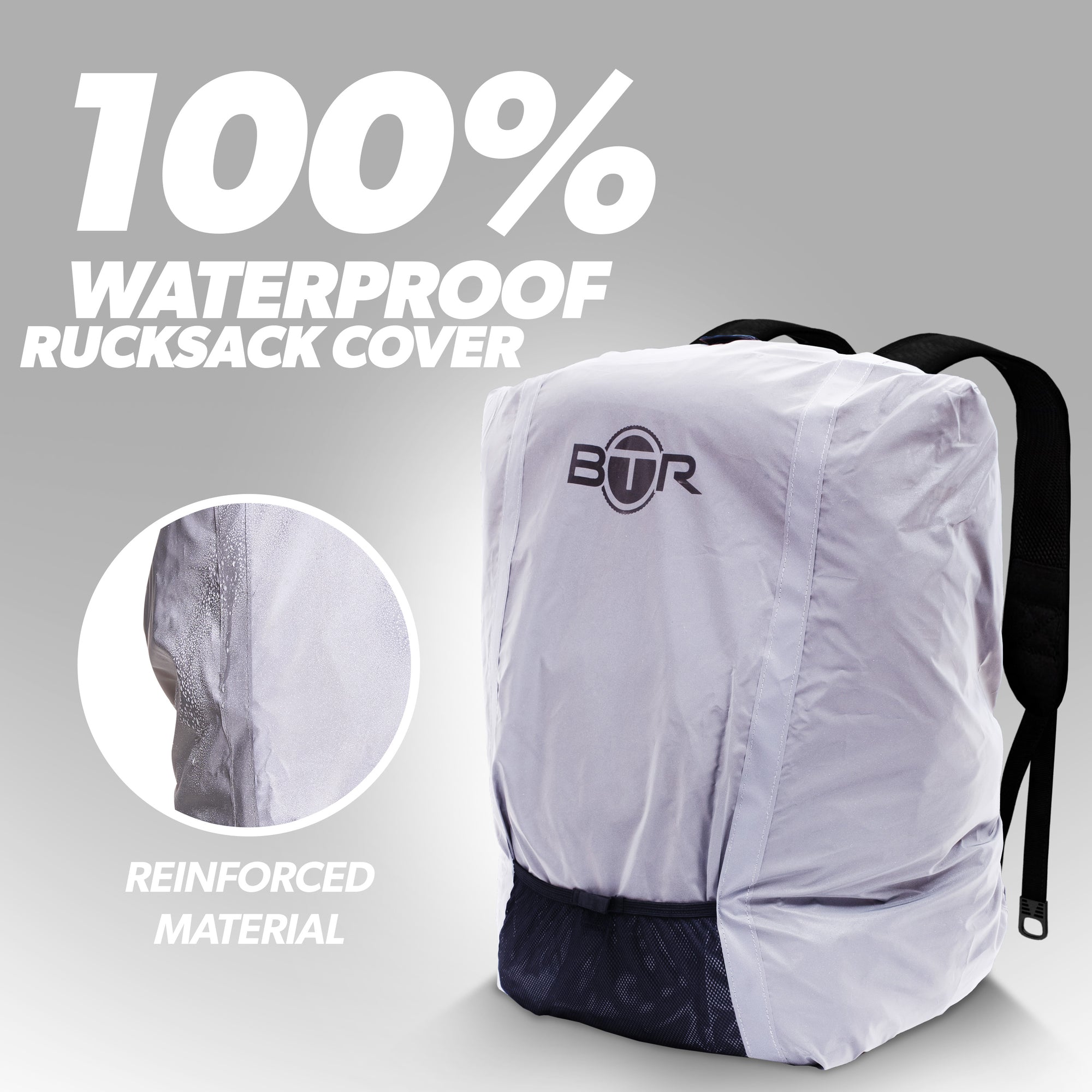| 100% Waterproof | Heavy-duty PU-coated fabric keeps your bag and belongings completely dry in even the heaviest downpours |